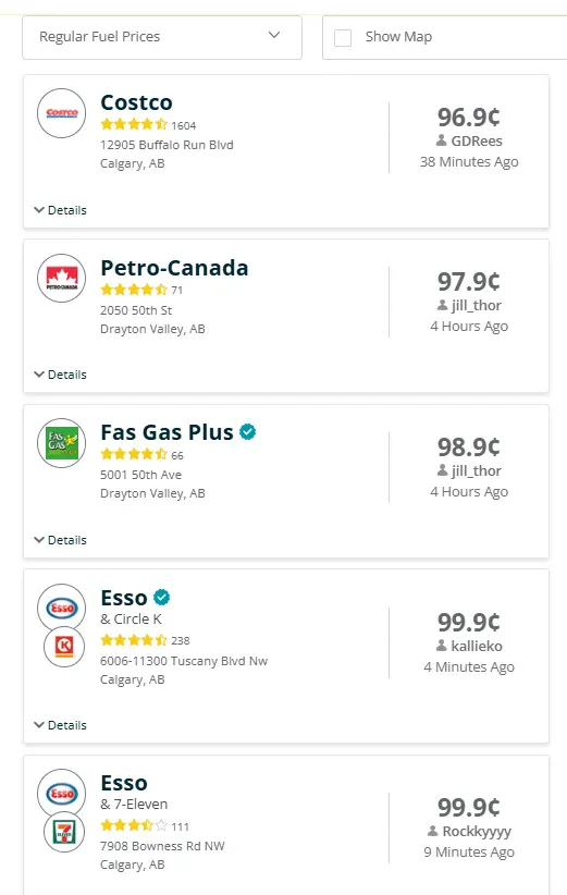 Pull into a Petro-Canada in Edmonton and you might do a double-take at the sign: 89.9 cents per litre. Head out to Drayton Valley and you'll see similar numbers 97.9 at some stations. Even Calgary's getting in on the action, with Costco members filling up at 96.9 cents.