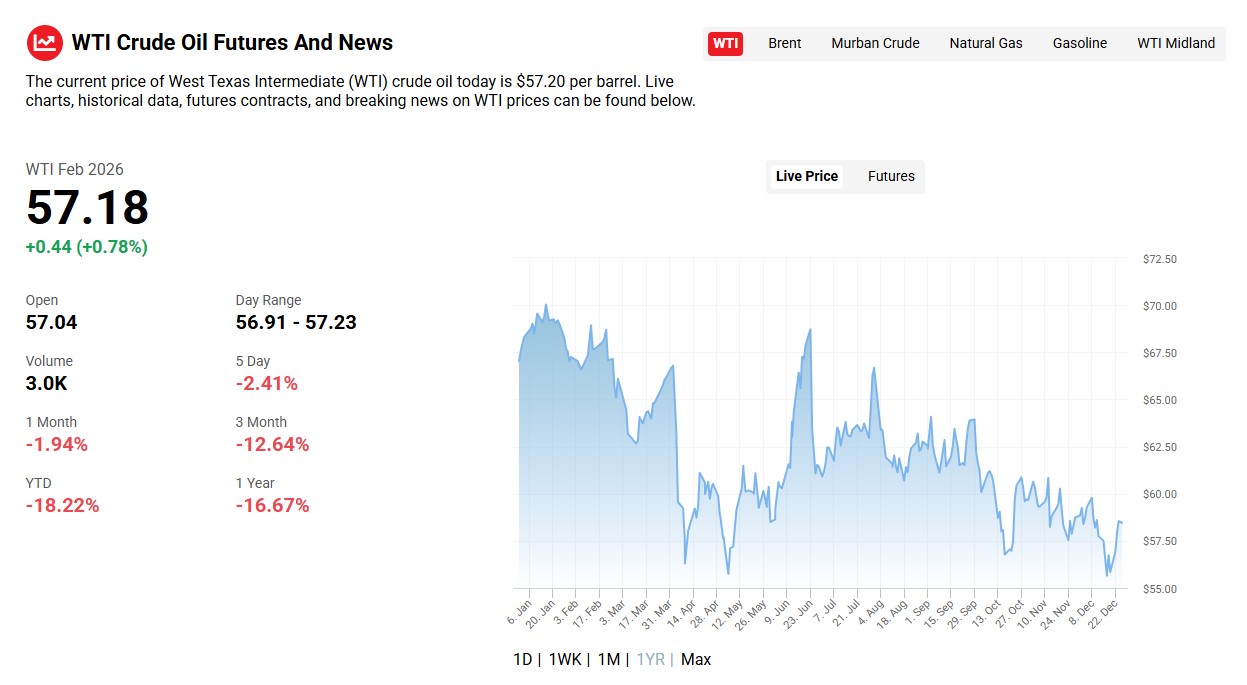 Oil prices have been weak for most of 2025, and December is no exception. WTI crude the benchmark that drives what you pay at the pump has been stuck in the mid-$50s to low-$70s range for months now. Compare that to 2022 when it cracked $120 per barrel and everyone was losing their minds.