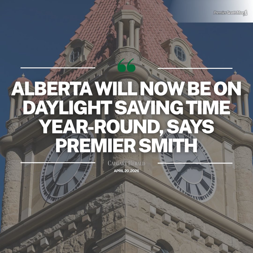 Calgary Herald Bell: Alberta Will Now Be on Daylight Saving Time Year-Round, Says Premier Smith (April 20, 2026): calgaryherald.com