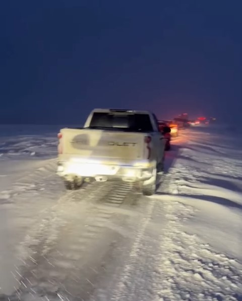 Multiple crashes blocked the roadway. A semi blocked northbound traffic near Sand Tiger Lodge, bringing everything behind it to a standstill. On Highway 881, two semi-trucks collided just north of Heart Lake, debris blocking both directions. Within hours, an estimated 300 vehicles were stranded across both highways with nowhere to go.