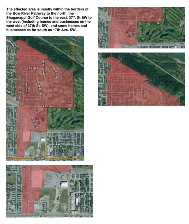 Until the advisory lifts, everyone inside the boundary needs to bring all tap water to a full rolling boil for one minute before using it for anything drinking, brushing teeth, making ice, washing raw food. Bottled water works too. Water wagons are being set up at locations posted at calgary.ca/wateroutages.