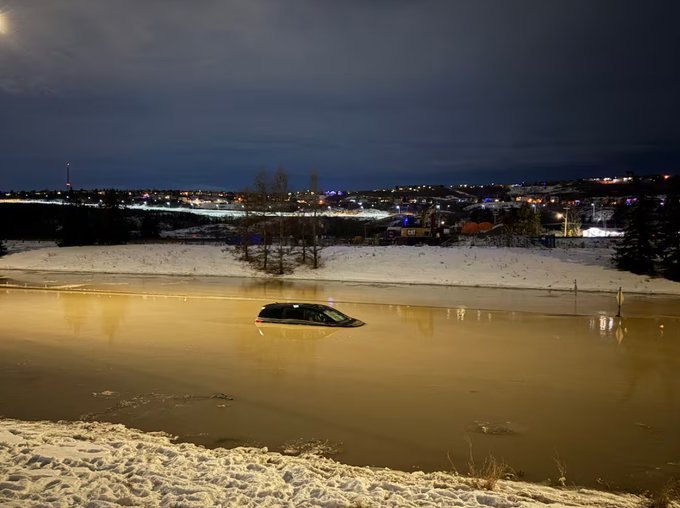 The break occurred around 8 p.m. last night in the Bowness area. Water surged across the highway, cracking pavement and sweeping vehicles into chaos. Some drivers climbed onto their roofs to escape the rising water.