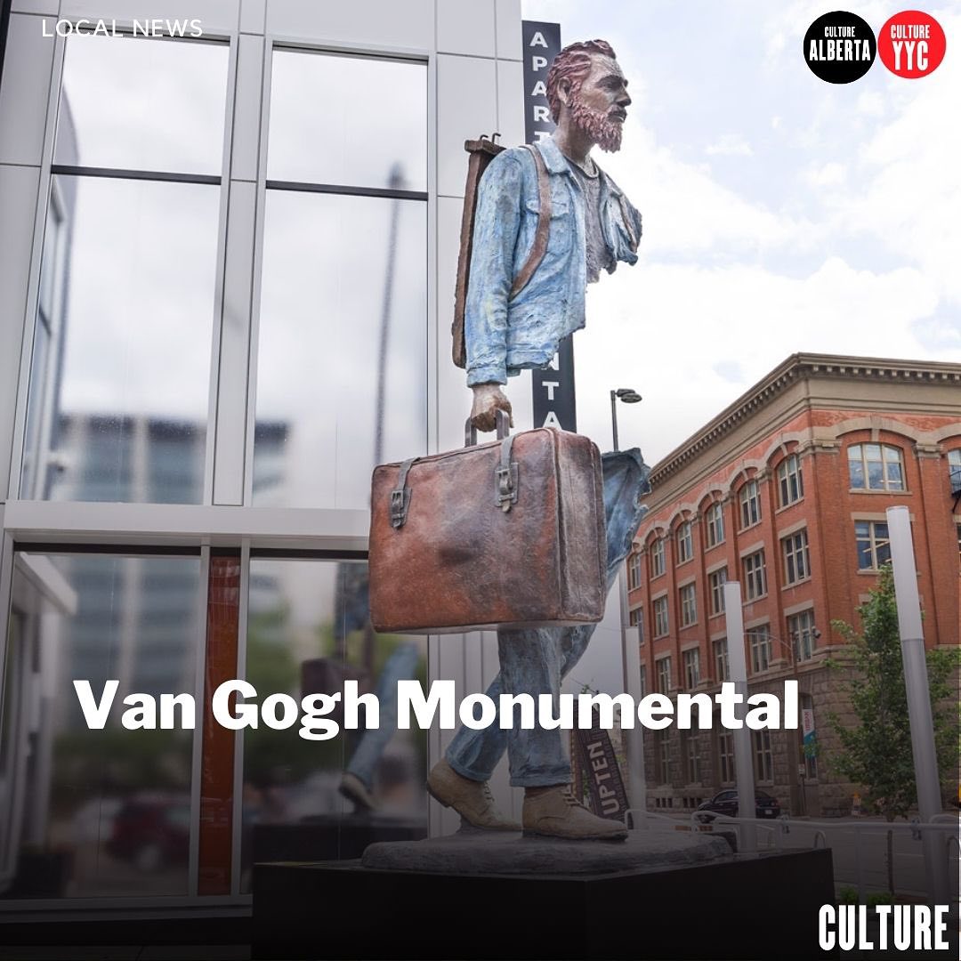 The towering Van Gogh statue carrying a suitcase part of a travelling exhibition that's made stops in Calgary. The larger-than-life bronze depicts the artist mid-journey, a nod to his restless travels across Europe. It's become a popular photo spot downtown.