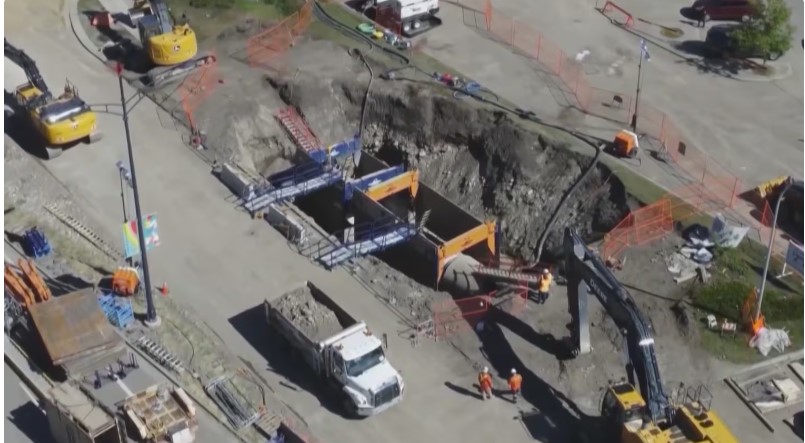All nine pours are now complete. The concrete has cured. Backfilling is done. Crews are repaving the roads above the dig sites and have started slowly refilling the pipe 22 million litres of water, fed in carefully over two to three days to avoid pressure spikes.