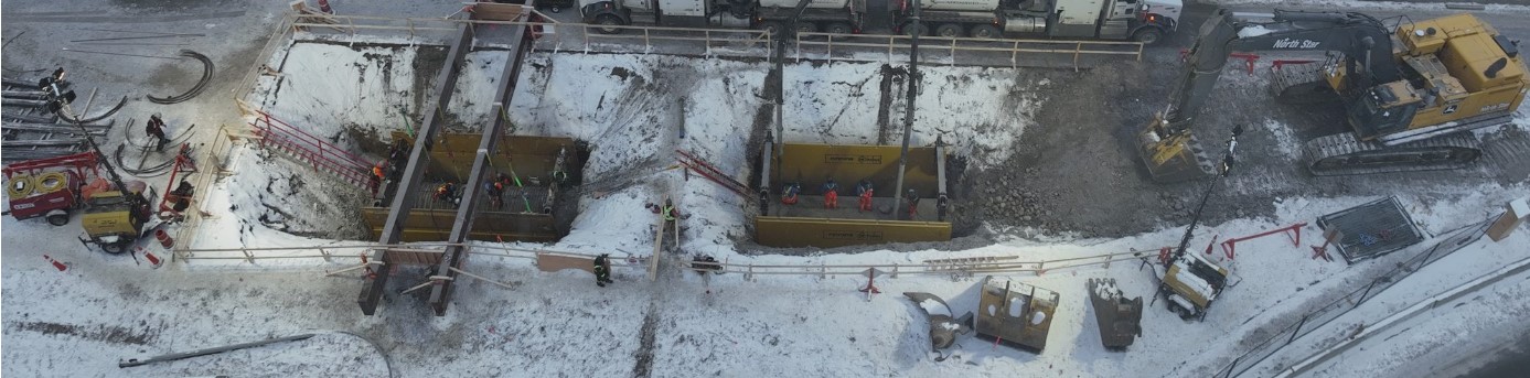This wasn't a patch job. Nine separate sections of the feeder main six along 16 Avenue N.W. near Sarcee Trail, three through Point McKay Park were dug up, one by one. Around each exposed section, crews built a steel reinforcing cage, then poured concrete around the outside of the existing pipe. A pipe inside a shell.