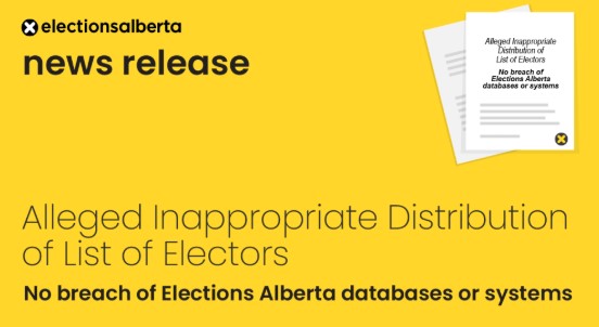 Primary Source: * Alleged Inappropriate Distribution of List of Electors — Official Statement from Elections Alberta (April 30, 2026)