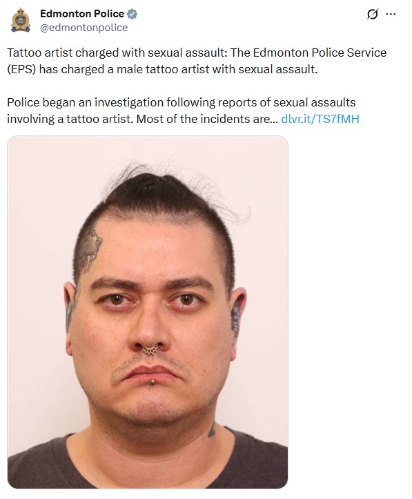 Edmonton Police Service Tattoo Artist Charged with Sexual Assault, Media Release MRU #SA26R005 (April 20, 2026): edmontonpolice.ca