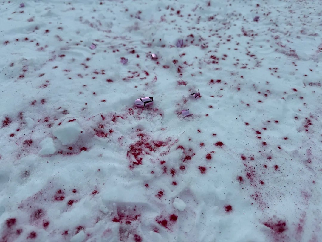 A visitor snowshoeing on the lake that afternoon noticed the debris immediately the unnatural pink coloring and glinting metallic pieces were hard to miss.