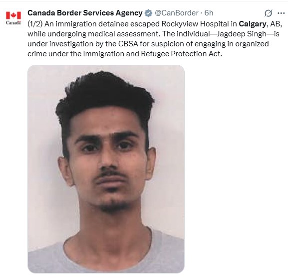 Jagdeep Singh, a man being held on suspicion of links to organized crime, managed to slip away from Rockyview Hospital while under supervision for a medical assessment. The Canada Border Services Agency had taken Singh into custody as part of an ongoing federal investigation.