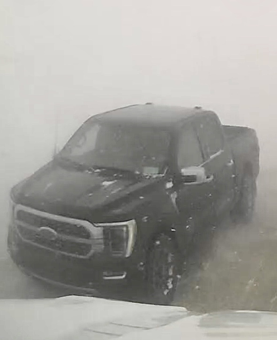 McLennan RCMP obtained dashcam footage during the investigation. Images released from that footage show the black pickup in the wrong lane, moving toward the driver's side of the oncoming semi with feet to spare before impact the moment the semi driver made the decision to swerve.