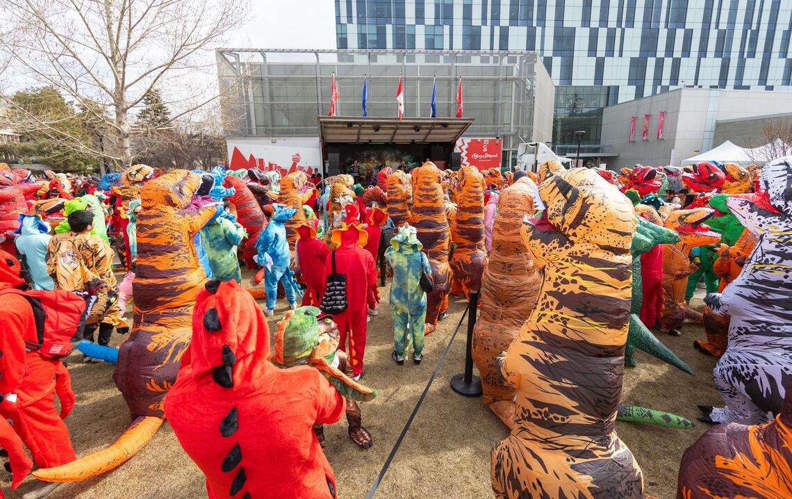 On April 11, UCalgary threw its 60th anniversary Community Day and buried inside the day's programming was one of the stranger institutional flex moves in recent Canadian university history: a serious attempt to break the Guinness World Record for the largest gathering of people dressed as dinosaurs.