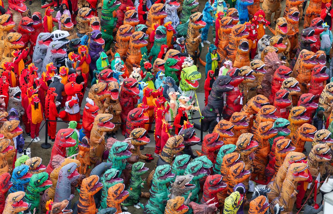 The record was sitting at 468. It had been set just last summer by the Cox Science Center and Aquarium in West Palm Beach, Florida not exactly the competition you'd expect a major research university to be gunning for. But UCalgary had a campus full of people willing to show up in onesies and blow-up dinosaur suits, and apparently that was enough.