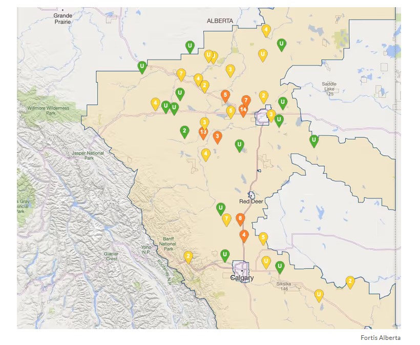 Check your utility's outage map before calling in Fortis Alberta, ATCO, Epcor, and Enmax all have live maps